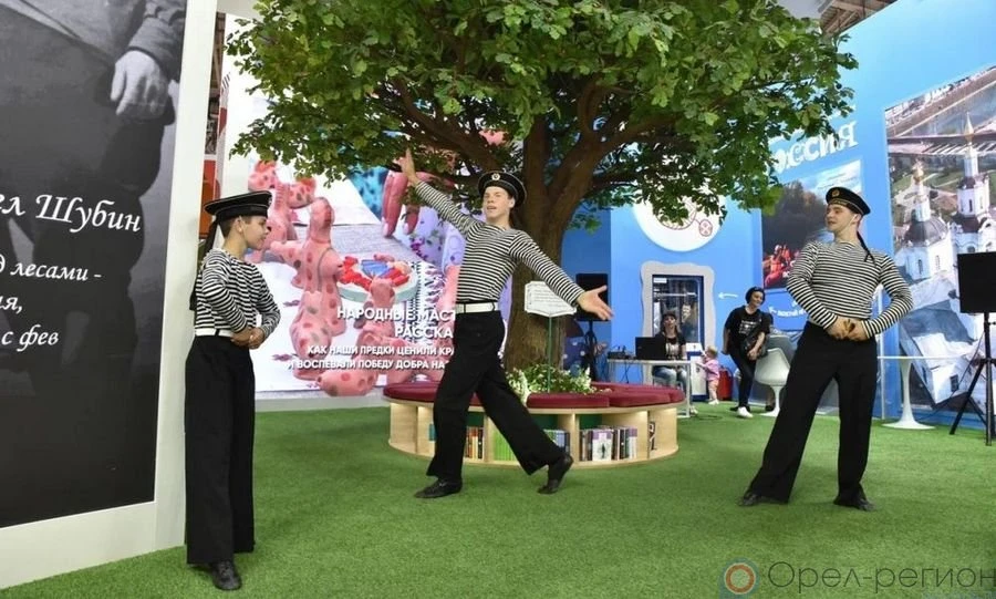 Работа павильона Орловской области была поддержана патриотическими песнями в исполнении певицы Екатерины Деминовой. Танцевальные номера представил коллектив «Ромашковая Русь» детского дома творчества №2.