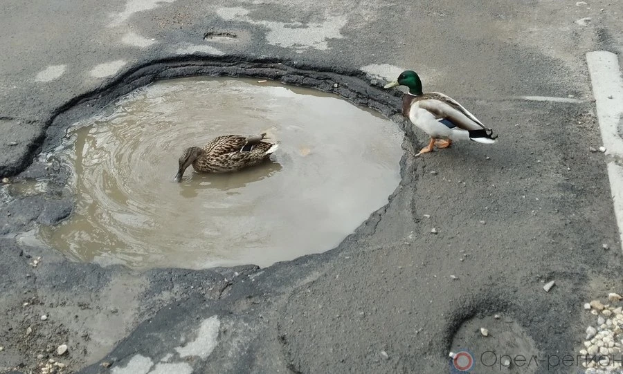 Видимо, утки меня поняли и пошли прочь от дома, а там… уткам просто раздолье. Столько ям, заполненных лужами - выбирай любую и плавай. Вот они и поплыли. Ну и машины тоже поплыли, куда им деваться?