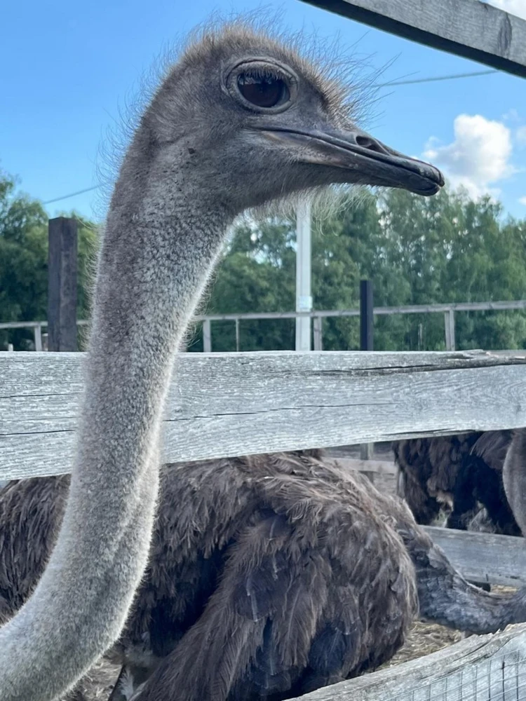 Выгодно или не очень содержать страусиную ферму — вопрос отдельный. Детально обсуждать его мы не стали. Но если говорить о коммерческой составляющей страусиного проекта, то спросом пользуется всё: цыплята, мясо, перья, яйца, взрослые особи.