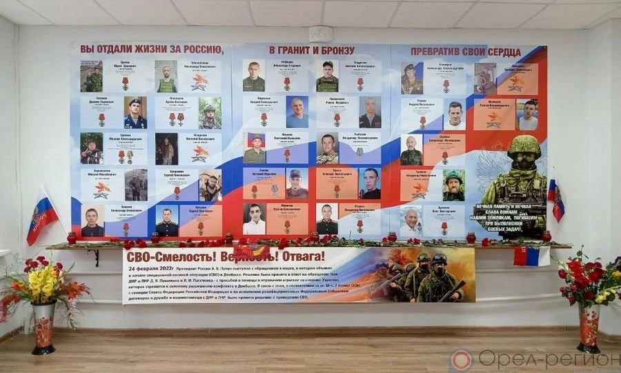 Так называется памятная экспозиция, посвящённая участникам СВО - уроженцам Кромского района, погибшим при исполнении воинского долга в Донбассе.