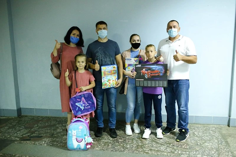 Представители компании, соблюдая требования социального дистанцирования, подарили нескольким будущим первоклашкам все необходимые канцелярские товары, а также школьные принадлежности.