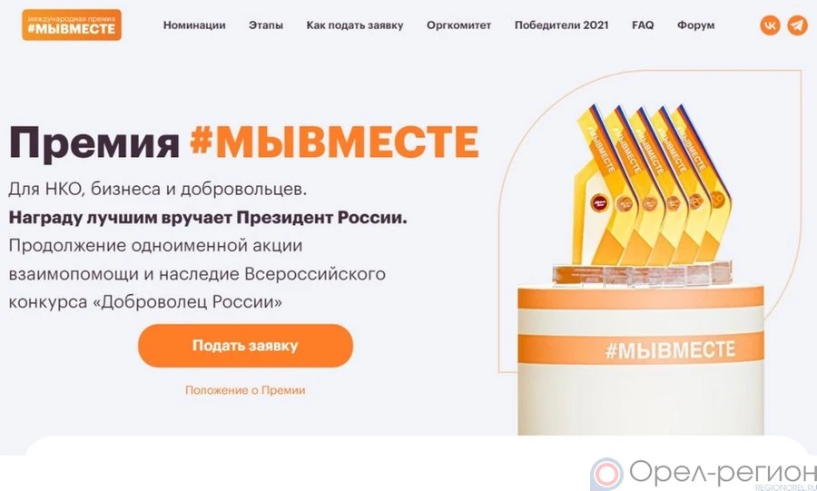 Конкурс в 2022 году включает 9 номинаций. Заявки на участие принимаются с 16 марта по 12 июня. Основную информацию можно найти на официальном сайте премии #МЫВМЕСТЕ. Торжественная церемония награждения запланирована на 5 декабря 2022 года в рамках Международного форума гражданского участия #МЫВМЕСТЕ.