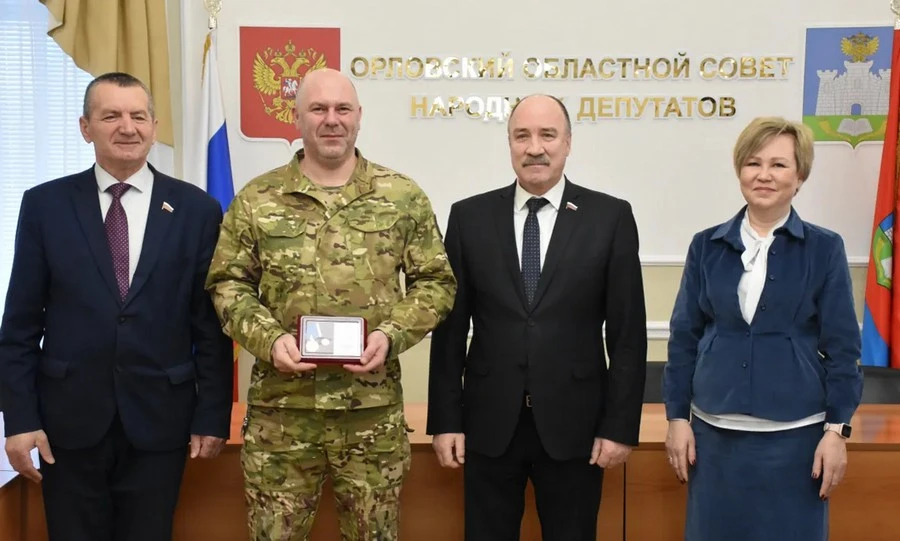 За проявленные отвагу и храбрость при исполнении воинского долга памятной медалью Орловского областного Совета народных депутатов «За самоотверженность и патриотизм» награждены участник специальной военной операции Михаил Байбаков и командир роты добровольческой бригады «Барс-Курск» капитан Игорь Попов.