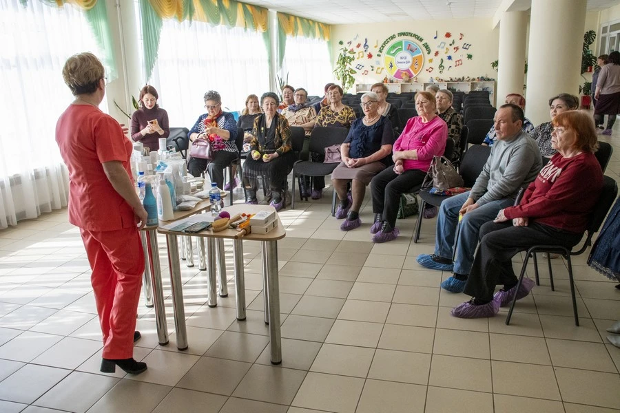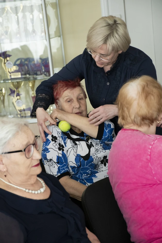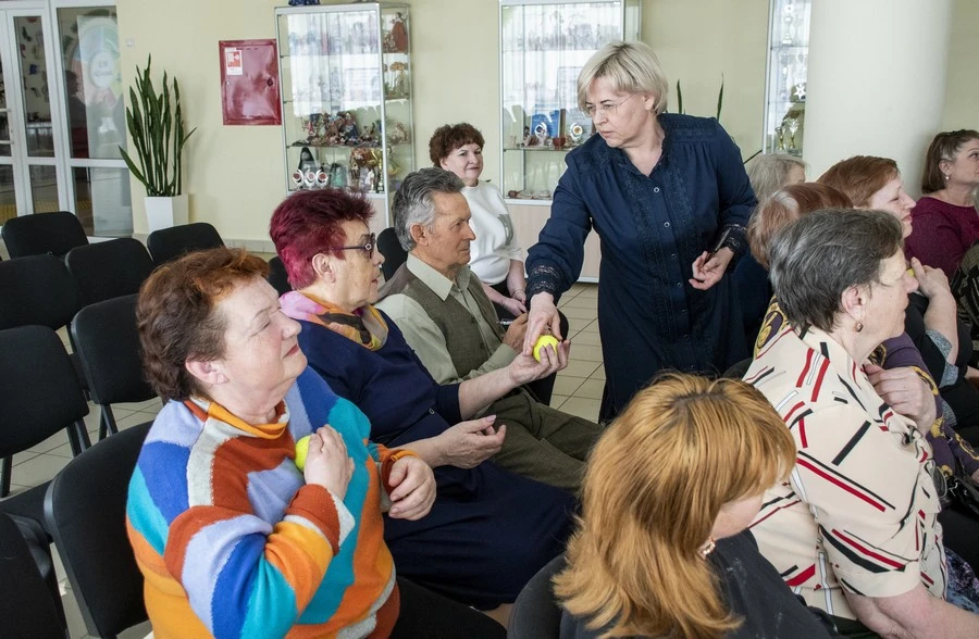 Когда мы приехали в «Ласточку», здесь проходило очередное занятие — на этот раз по самомассажу. Проводил его медработник. А вообще здесь стараются учесть интересы каждого. Например, огородники собираются и делятся опытом выращивания овощей с фруктами и их консервации. А потом вместе дегустируют лето из банок.