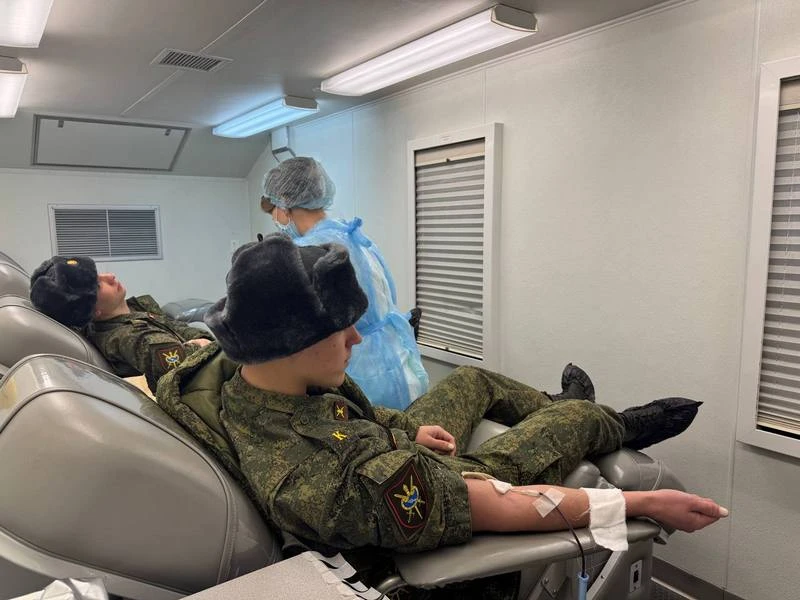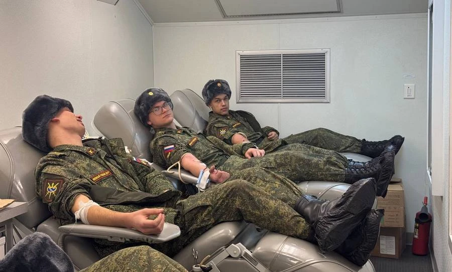 Утром к главному корпусу подъехал мобильный пункт забора крови. Курсанты военного учебного центра под руководством старшины курса Михаила Нохрина пришли сдавать кровь. Ребята последовательно прошли стандартный путь донора: регистрацию, анкетирование, медицинский осмотр, лабораторные исследования и процедуру донации.