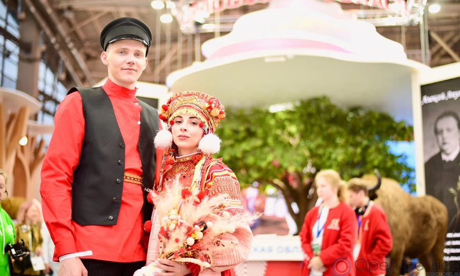 Внимание посетителей привлекли яркие костюмы орловской пары в русском народном стиле.
