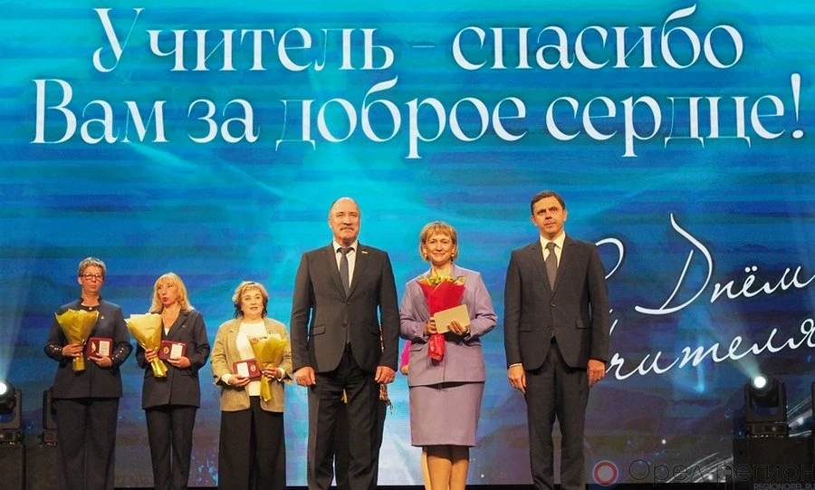 - Дорогие учителя, вы трудитесь с величайшей самоотдачей, прививая юным гражданам горячую любовь к родной стране, помогаете ребятам поверить в свои силы, раскрываете их таланты, - обращаясь к виновникам торжества, сказал губернатор Андрей Клычков. - Семья и школа - вот два центра силы, наполняющих человека смыслом, верой, надеждой и открывающих новые горизонты в творчестве. Учителя Орловщины - большой профессиональный коллектив, выполняющий непростые задачи, поставленные перед системой образования. Наши учителя никогда не оставались в стороне и от общественных задач. Сегодня такой важнейшей задачей остаётся помощь Российской армии, героям СВО, забота об их семьях. Спасибо вам за эту поддержку!