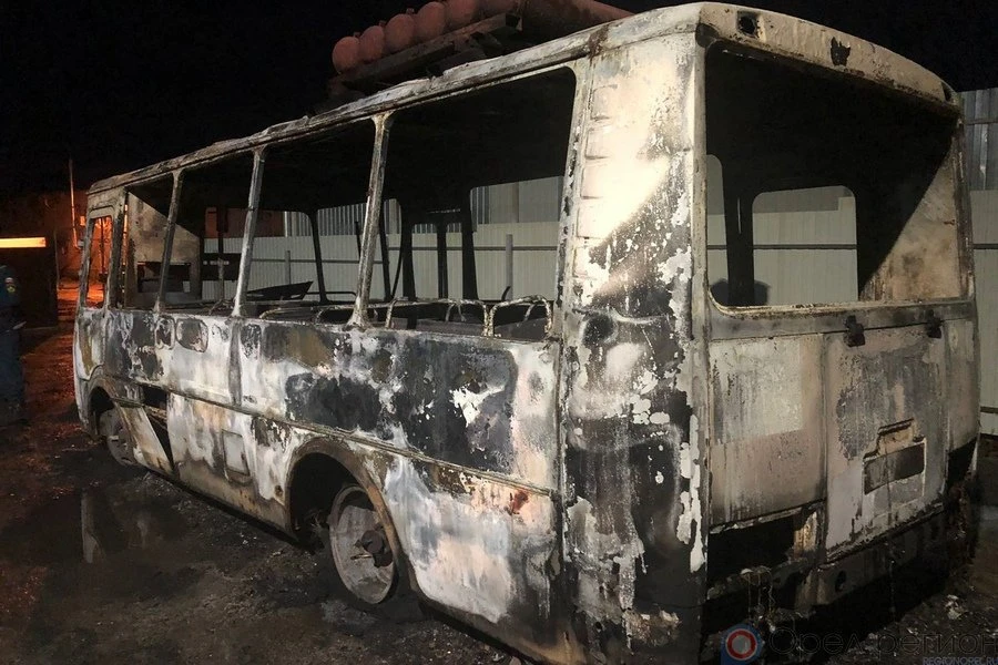 В результате пожара автобус выгорел изнутри, после локализации возгорания было обнаружено тело погибшего с термическими повреждениями.