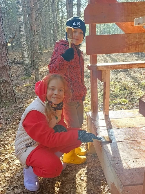 На радость добровольным помощникам в этот день выдалась прекрасная солнечная погода, которая способствовала слаженной работе. Вооружившись кисточками, ребята покрасили пять новых беседок для отдыха, установленных на территории Тургеневского участкового лесничества.