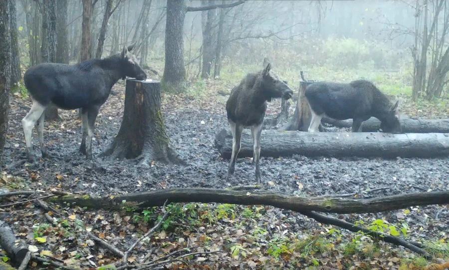 В Красниковском лесу, входящему в состав «Орловского полесья», установленная фотоловушка зафиксировала редкую картинку: маму-лосиху в сопровождении трёх крепышей-лосят. Обычно у лосихи рождается один или два телёнка, а тройня скорее исключение из правил. Но тем и удивительна природа, что может позволить себе подобные исключения.