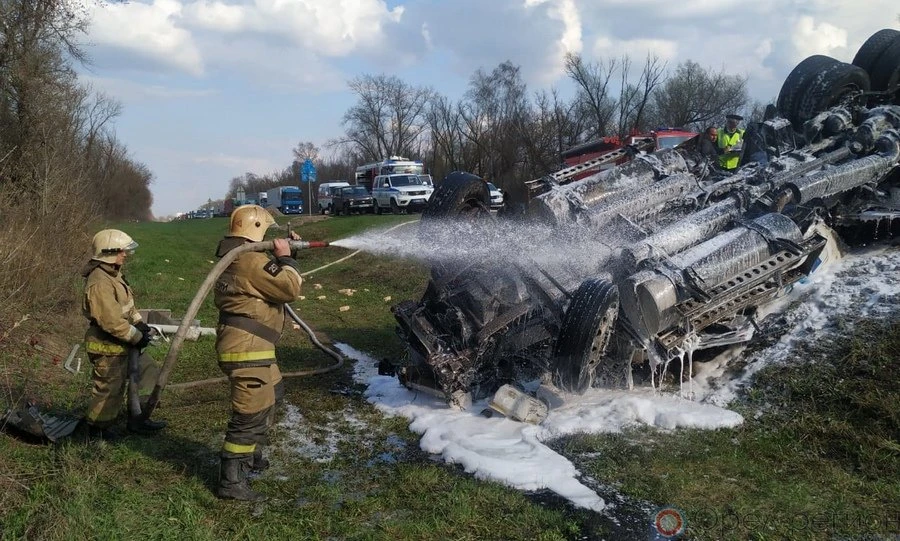 По предварительной информации водитель не справился с управлением и фура, гружённая кирпичом, перевернулась.