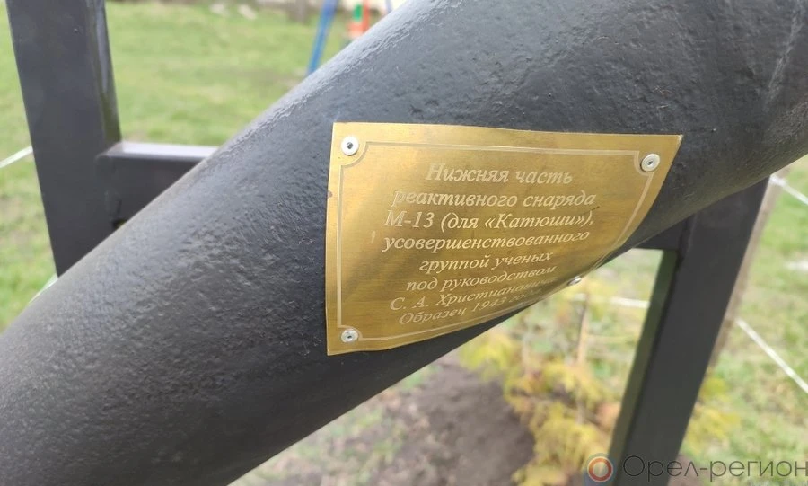 Осколок образца 1943 года предоставил краевед из Новосиля Владимир Бахтин. Установка осуществлена при финансовой поддержке Урицкого райпо.