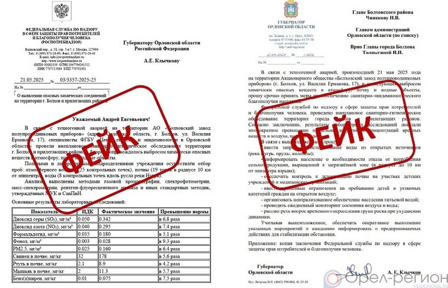 Тема писем - превышенная концентрация вредных веществ в воздухе, почве и воде из-за атаки БПЛА на Болховский завод полупроводниковых приборов.