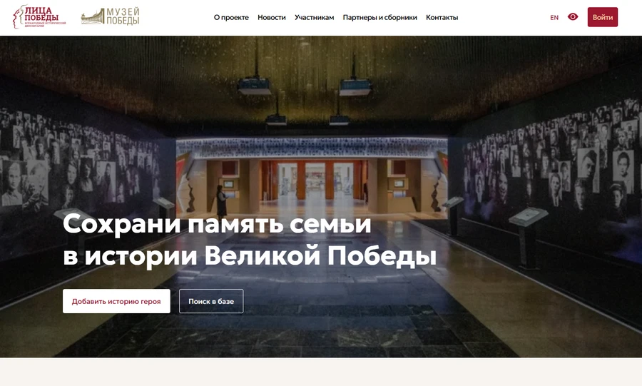 В Музее Победы создана уникальная «народная экспозиция», где участники проекта могут найти информацию о своих близких, живших в годы Великой Отечественной войны. Сегодня в базу проекта передано уже более 1,2 миллиона историй, с которыми можно ознакомиться на сайте «Лица Победы» или в мультимедийном зале Музея Победы на Поклонной горе (г. Москва, Площадь Победы, д. 3).