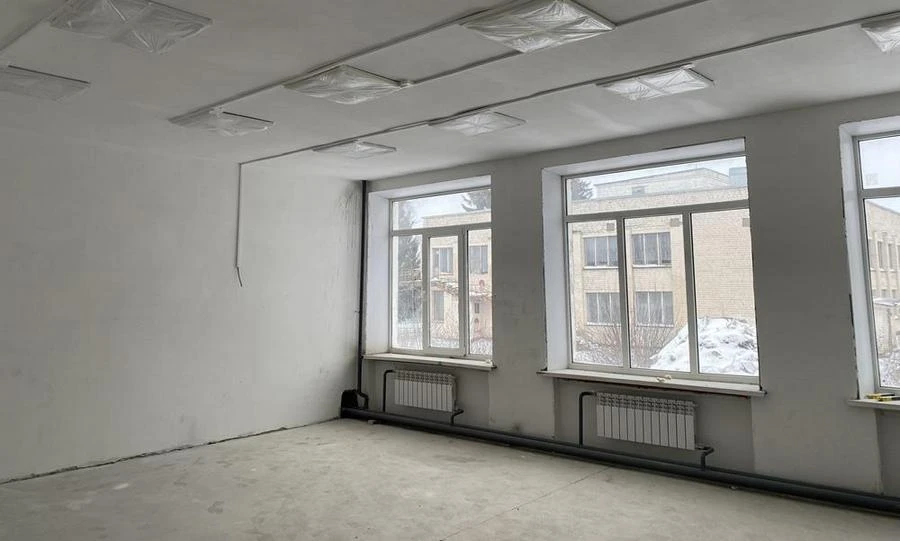 В здании завершены работы по монтажу сетей отопления и электроснабжения, устройству гипсокартонных перегородок, выполняется монтаж канализации и водопровода. Также заменены окна, строители устанавливают двери и делают откосы. В помещениях проводятся внутренние отделочные работы: уже окрашены стены и потолки, уложена плитка на втором этаже и лестнице, работы продолжаются на первом этаже.