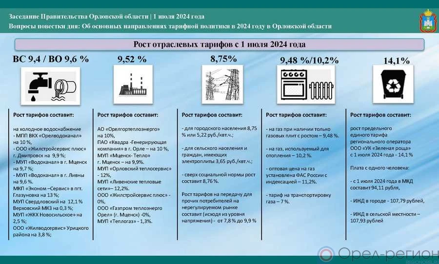 - Постановлением Правительства РФ для Орловской области установлен индекс роста платы граждан - 10% и допустимое отклонение 4,9%. Указом губернатора для всех муниципальных образований определён максимальный рост совокупного платежа граждан, который не должен превысить 14,9%, - сообщила Елена Жукова.