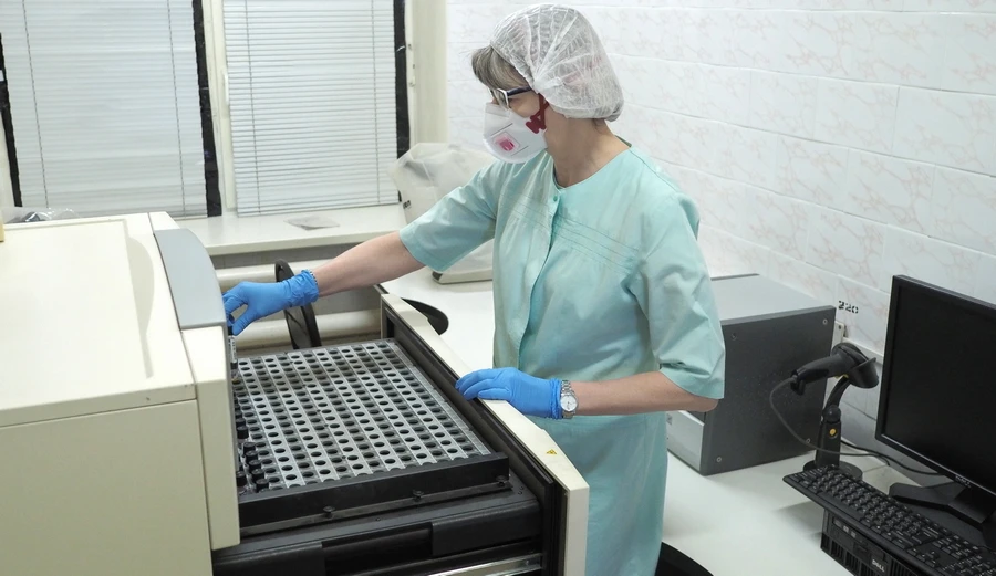 Нам с фотокорреспондентом разрешили посмотреть, как идёт работа в бактериологической лаборатории. Выдали одноразовые медицинские халаты, шапочки, маски, бахилы — и нас уже не отличишь от медиков. В лаборатории, куда мы вошли в полном защитном обмундировании, врачи по анализам определяют наличие туберкулёза в организме человека.