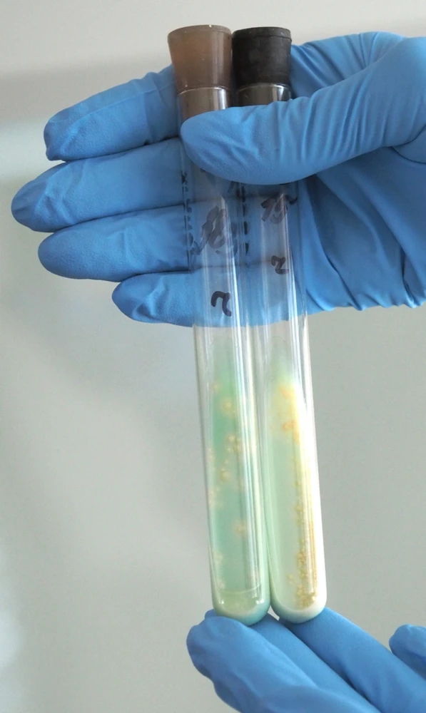 Заведующая лабораторией Наталья Свечникова показала две пробирки с содержимым нежно-зелёного цвета. Внутри будто рассыпанные крупинки-бусинки.