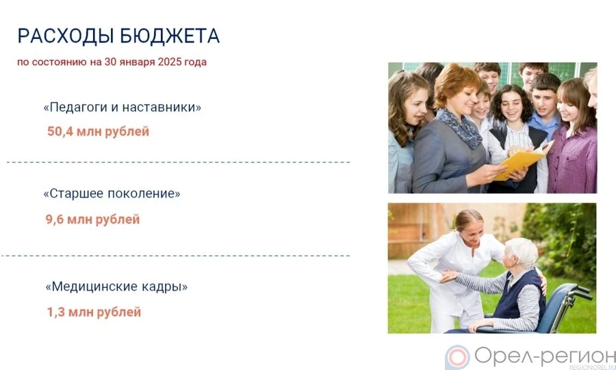 Первые кассовые расходы прошли в рамках проектов «Педагоги и наставники» на выплаты учителям за классное руководство - 50,4 млн рублей, «Старшее поколение» - на создание системы долговременного ухода - 9,8 млн рублей и «Медицинские кадры» на стимулирующие выплаты медицинским работникам - 1,7 млн рублей.