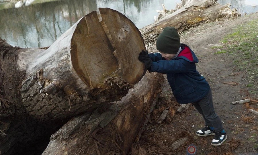 Первым делом глава региона взялся собирать остатки спиленных деревьев.