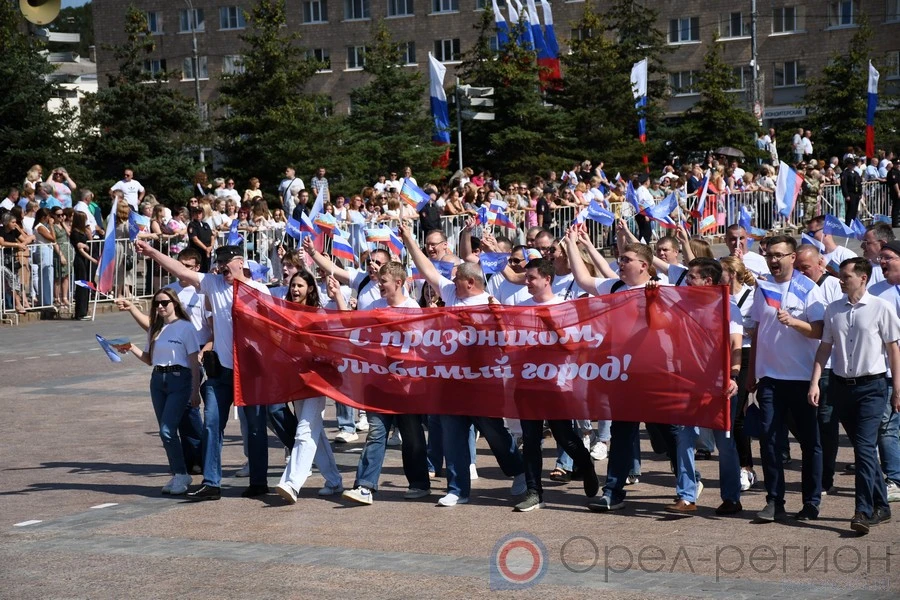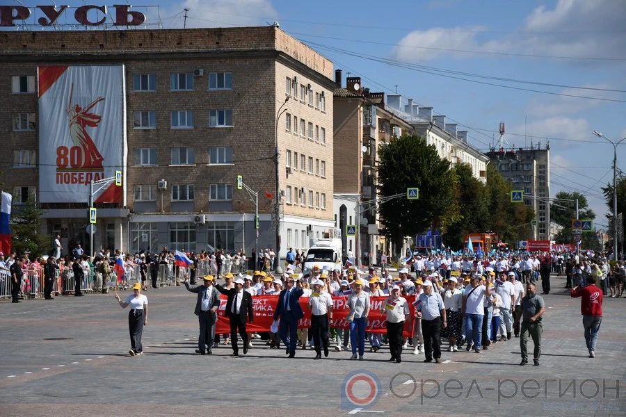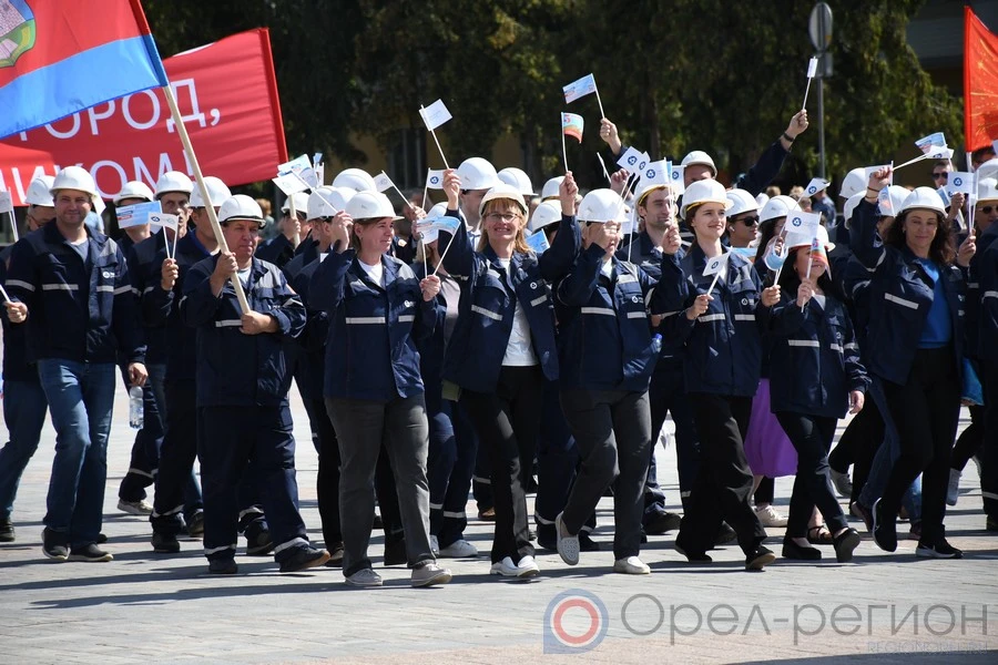 Впервые за много лет перед зрительскими трибунами с флагами и цветами, эмблемами и праздничной символикой прошли представители трудовых коллективов более 20 орловских предприятий, всего не менее 1400 человек.