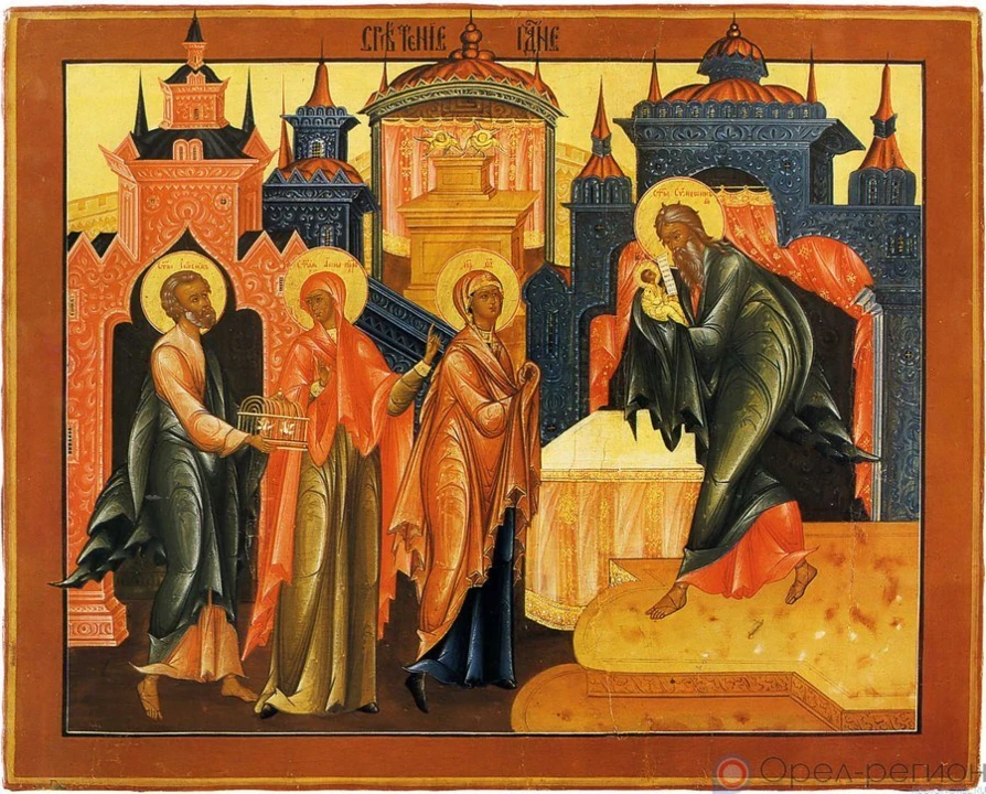 События, которые мы вспоминаем в этот день, описаны в Евангелии от Луки. В сороковой день после Своего Рождения, как это предписывал закон Моисея, Богомладенец Иисус Пречистой Девой Марией и праведным Иосифом Обручником был принесён в Иерусалимский храм. В то время в Иерусалиме жил праведный старец Симеон, которому было обещано Богом, что он не умрёт, пока не увидит Мессию. По откровению Божию праведный Симеон пришёл в Иерусалимский храм в то время, когда туда был принесён Богомладенец Христос. Встретив Господа, старец Симеон взял Его на руки, благословил Бога и произнёс: «Ныне отпускаешь раба Твоего, Владыка, по слову Твоему с миром, ибо видели очи мои спасение Твое, которое Ты уготовал пред лицем всех народов, свет к просвещению язычников и славу народа Твоего Израиля» (Лк. 2:29-32). А Пресвятой Деве Марии праведный Симеон сказал: «Тебе Самой оружие пройдёт душу, - да откроются помышления многих сердец» (Лк. 2:35). Такими пророческими словами старец Симеон возвестил о пришествии в мир Спасителя, а Пресвятой Деве предсказал скорбь, которую Она действительно пережила при крестной смерти Своего возлюбленного Сына - Господа нашего Иисуса Христа.