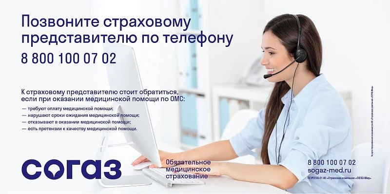 Если вы застрахованы в компании «СОГАЗ-Мед» и у вас возникли вопросы, связанные с получением медицинской помощи в системе ОМС или качеством оказания медицинских услуг, обращайтесь в СОГАЗ-Мед по круглосуточному телефону контакт-центра 8-800-100-07-02 (звонок по России бесплатный). Подробная информация на сайте www.sogaz-med.ru.