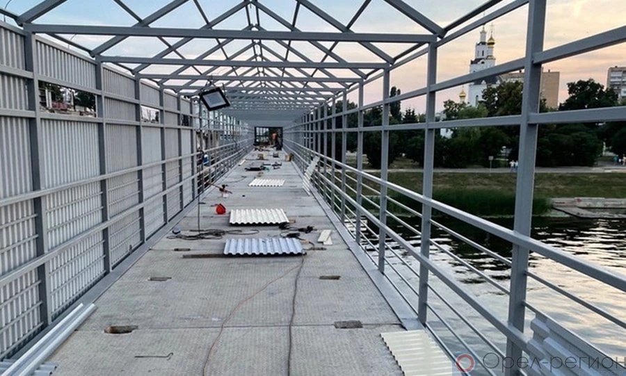 На данный момент рабочие занимаются обшивкой пешеходной галереи, работы планируется завершить в течение недели.