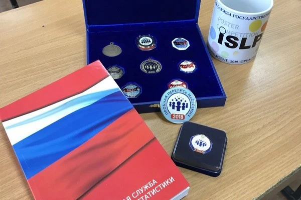 Студентам группы 2 МОСП(б) были торжественно вручены дипломы победителей регионального этапа, памятные значки, кружки и блокноты с символикой Федеральной службы государственной статистики и международного конкурса статистических постеров ISLP.
