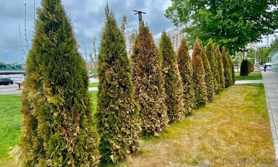 - Специалисты провели собственное расследование. Осмотр деревьев дал понять, что злоумышленник двигался с распылителем со стороны «Атолла» к стадиону Ленина по тротуару между площадью Жукова и строительным магазином, опрыскивая сверху донизу плотный ряд растений. На это указывает большая повреждённость туй с этой стороны. Уже ветром ядохимикат распылился на противоположную сторону, затронув соседние деревья, в том числе и несколько маленьких туй, - рассказали в администрации Орла.