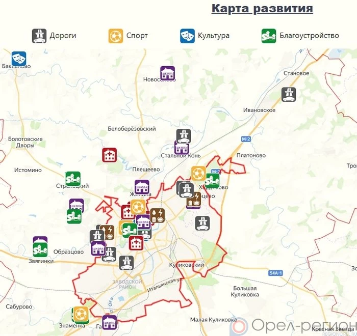 На «Карте развития» можно найти десятки значимых для Орловщины объектов.
