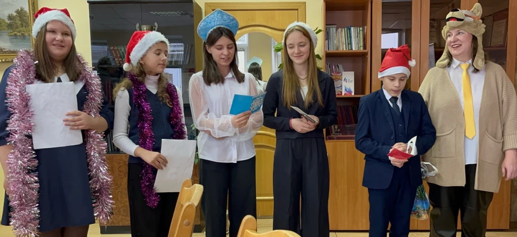 Школьники пришли в редакцию по-новогоднему одетыми, что сразу создало атмосферу праздника. Сначала ребята прочитали стихотворения, а потом загадывали журналистам загадки. За правильные ответы вручались вкусные подарочки. В проведении мероприятия школьникам помогла советник директора по воспитанию и по взаимодействию с детскими общественными объединениями Марина Иванцова.