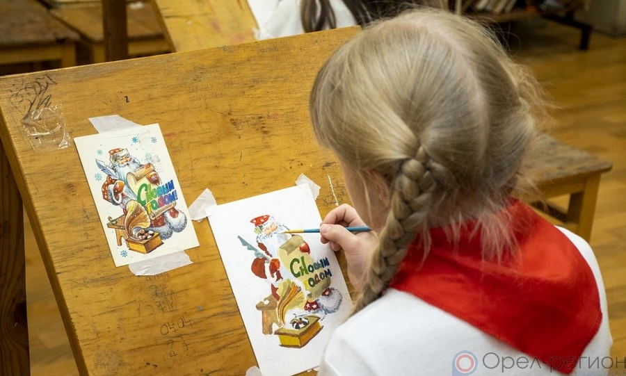 Эти и другие тёплые праздничные сюжеты учащиеся Орловской детской школы изобразительных искусств и ремёсел срисовывают со старых открыток - тех самых, которые их мамы и бабушки, кажется, ещё не так давно посылали по почте, поздравляя с Новым годом друзей и родных.