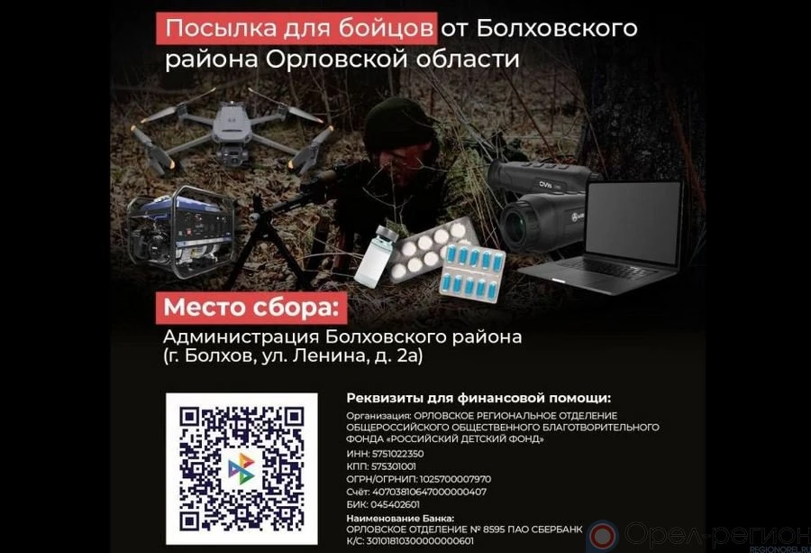 Все желающие помочь нашим бойцам могут принести необходимые вещи в администрацию Болховского района (г. Болхов, ул. Ленина, д. 2а) или перевести деньги на специальный счёт.
