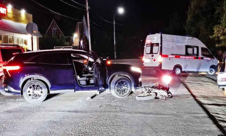 Дорогу не поделили автомобиль Kaiyi и мотоцикл. В результате ДТП водитель двухколёсного транспорта без прав получил телесные повреждения и был госпитализирован.