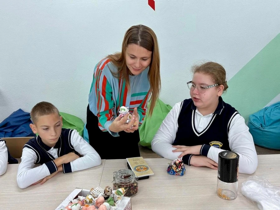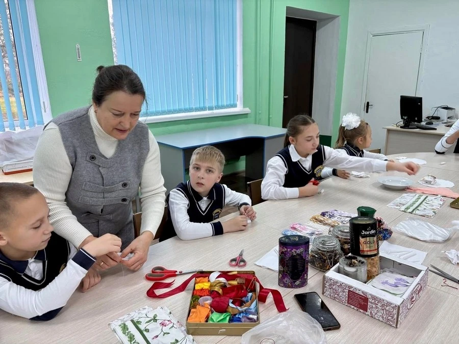 Учащиеся школы для бойцов СВО в день открытия музейного центра под руководством волонтёра Народного фронта Татьяны Гостевой смастерили кукол-оберегов, которых отправят воинам вместе с гуманитарной помощью. А сама волонтёр подарила музейному центру окопную свечу.