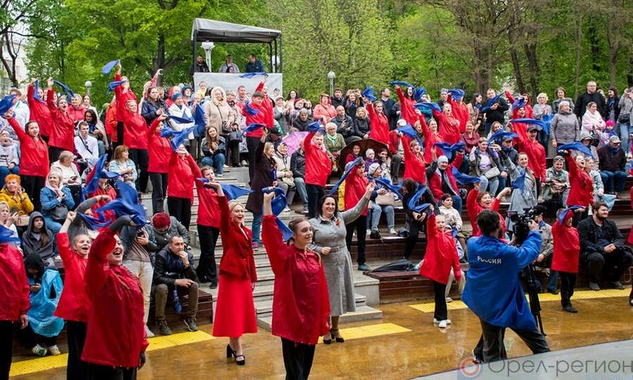 Зрителям и участникам мероприятия в городском парке культуры и отдыха в Орле раздали синие платочки - символы женской верности, чистого неба и веры в Победу. И горожане закружились в танце под легендарную песню «Синий платочек» в исполнении Клавдии Шульженко.