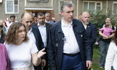 Леонид Слуцкий вошёл в подъезд дома № 250 на улице Комсомольской и пообщался с жильцами, которые по состоянию здоровья не могут выйти во двор.