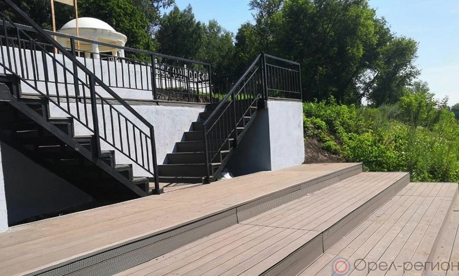В рамках благоустройства на объекте отремонтировали сходные ступени к реке, восстановили подпорную схему. Вокруг ротонды на всей площадке уложена декоративная тротуарная плитка.
