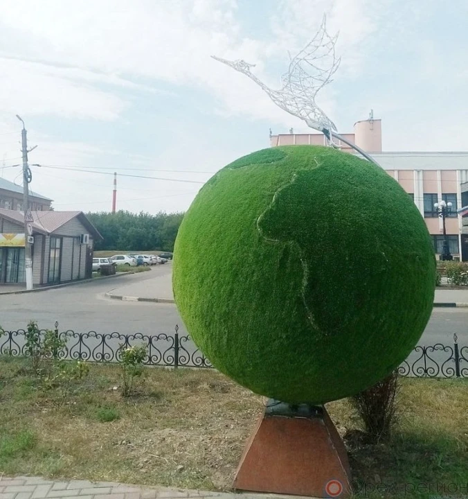 Новую топиарную фигуру в виде земного шара с журавлём, летящим в небо, установили в пгт Колпна на площади Мира.