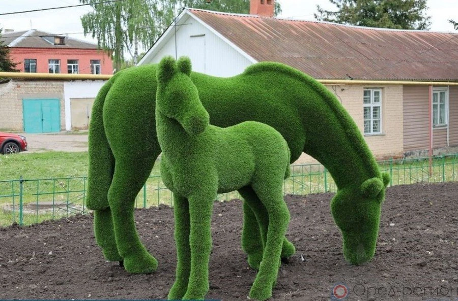 Работы по благоустройству включали в себя монтаж тротуара, установку бордюров, водоотводного лотка, завоз и выравнивание плодородного грунта, укладку асфальта, посев газонной травы и установку топиарных фигур.