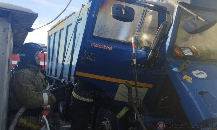 В результате горения в кабине КАМАЗа оплавлена панель и повреждены сидения автомобиля. Пострадавших нет, предположительная причина происшествия - короткое замыкание электропроводки в кабине грузовика.