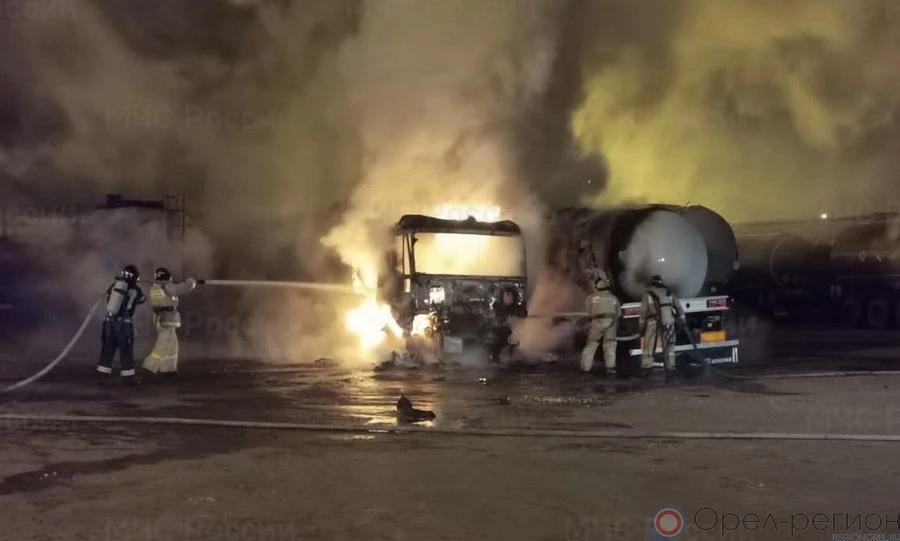 На момент прибытия пожарных кабина большегруза горела открытым пламенем, также горело дизельное топливо под топливным баком. Огонь мог распространиться на стоящие рядом грузовые автомобили с битумными бочками.
