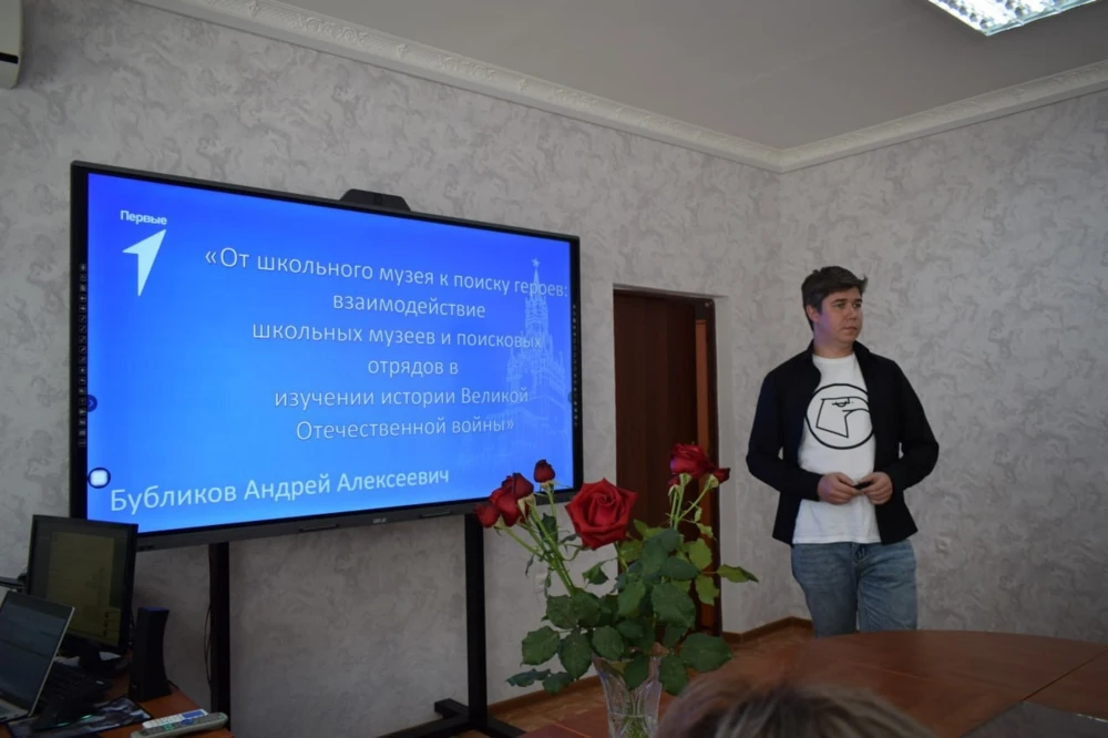 Опытом взаимодействия школьных музеев и поисковых отрядов в изучении истории Великой Отечественной войны поделился главный специалист по организации работы «Движения первых» в городе Мценске Андрей Бубликов.