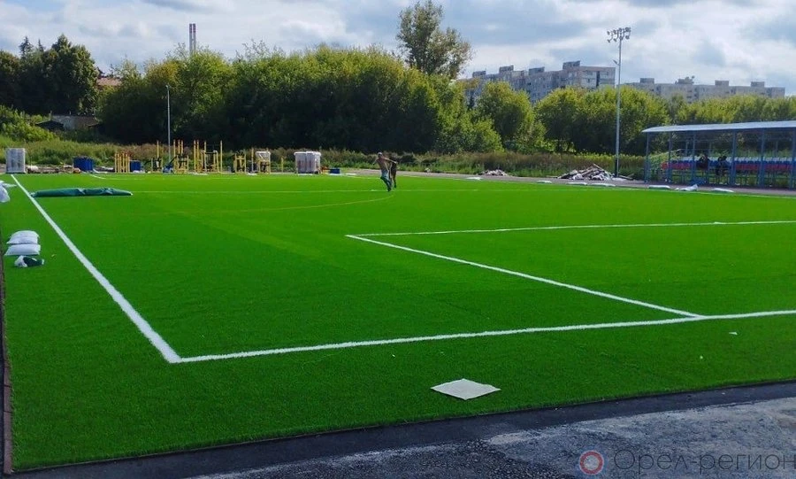 В настоящее время на объекте выполнена укладка искусственного покрытия футбольного поля и легкоатлетических дорожек, завершён монтаж спортивно-технологического оборудования для воркаута и трибуны для зрителей.
