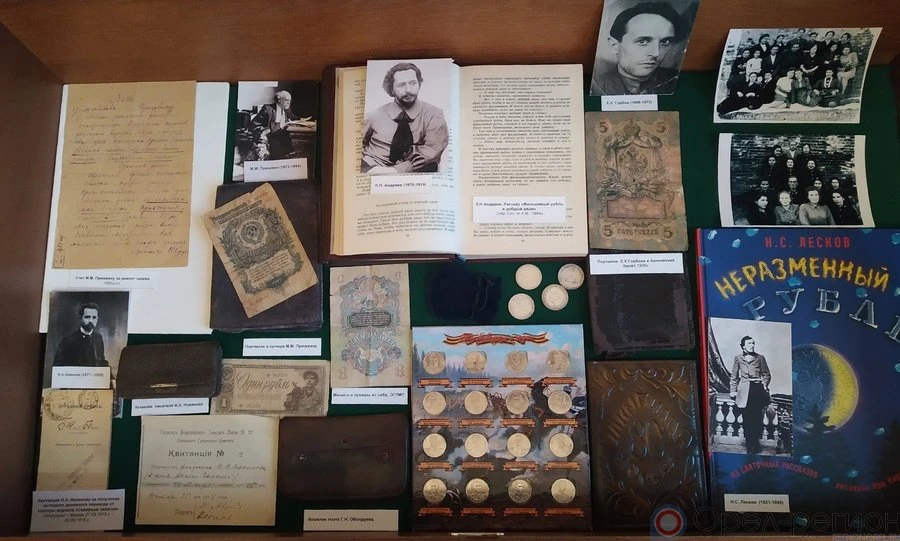 Обращаясь к гостям выставки с приветственным словом, директор музея И.С. Тургенева Вера Ефремова отметила наиболее интересные экспонаты из собрания музея: кошелёк для монет, принадлежавший матери И.С. Тургенева, квитанцию на фирменном бланке гостиницы «Лоскутная», выписанную И.А. Бунину, портмоне писателей М.М. Пришвина, И.А. Новикова, Е.К. Горбова и, конечно же, монеты и купюры разных лет.