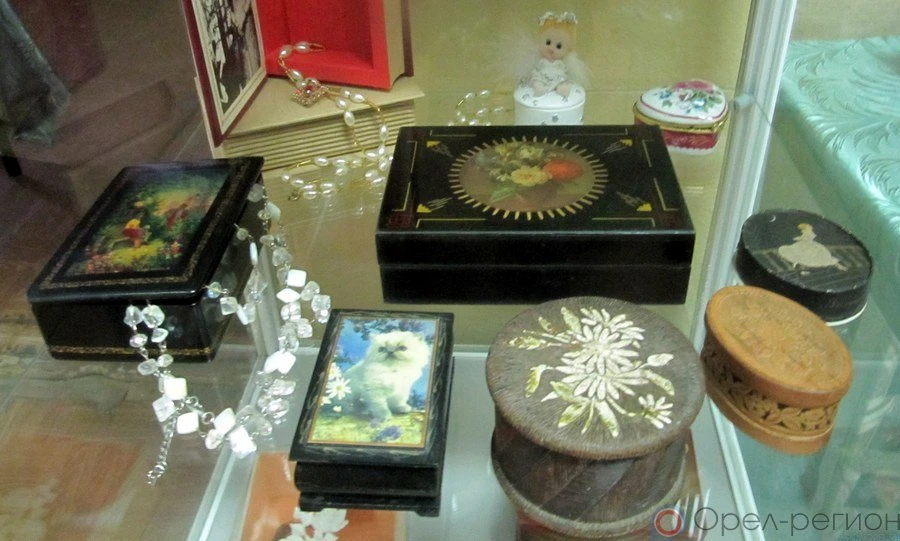В середине XX века самыми популярными стали шкатулки из дерева. Их мог позволить купить себе каждый. В Новосиле мастером геометрической резьбы по дереву был Виктор Заблоцкий, некоторыми его шкатулками можно полюбоваться на нашей выставке. Сейчас шкатулки тоже часто применяются, дизайнеры любят дополнять ими интерьер. Представлена на нашей выставке миниатюрная шкатулочка для украшений из бересты, сделанная в Суздале, есть сувенирный ларец из Сергиева Посада… Широко известны и пользуются большой популярностью шкатулки мастеров лаковых миниатюр из Федоскино, Мстеры, Палеха…