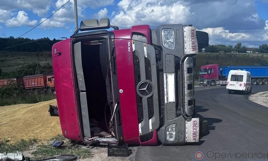 Водитель Mercedes не справился с управлением, и машина перевернулась. В результате ДТП мужчина, управлявший большегрузом, получил телесные повреждения.
