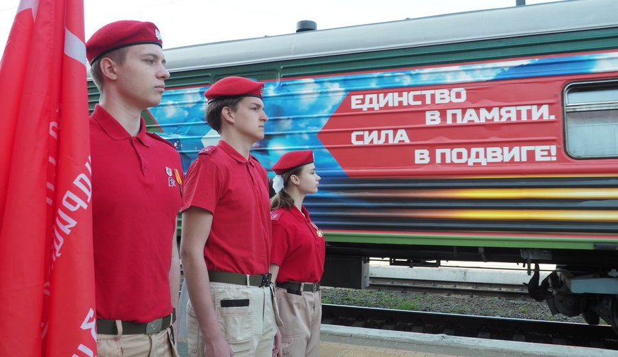 С 19 апреля по 3 июля Министерство обороны РФ совместно с ОАО «РЖД» проводит агитационно-пропагандистскую акцию «Единство в памяти. Сила в подвиге!» с использованием агитпоезда. 3а 75 дней он преодолеет более 33 тыс. км по территории всех военных округов, посетит 75 городов и населённых пунктов в 61 субъекте России.