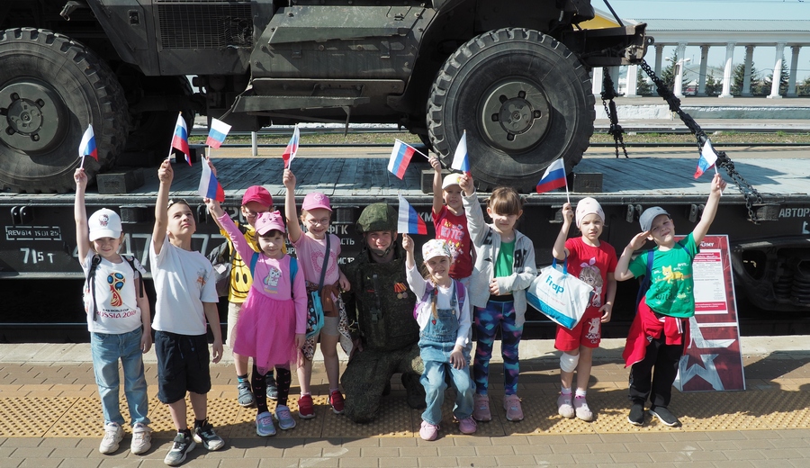 Посетители акции побывали на экскурсии в воинском эшелоне. Восемь из 19 вагонов состава - тематические. В них представлены экспозиции Сухопутных войск, Воздушно-космических сил, Воздушно-десантных войск, Военно-морского флота, Главного управления кадров, департамента культуры Минобороны России, «Юнармии», а также Главного военно-политического управления ВС РФ.